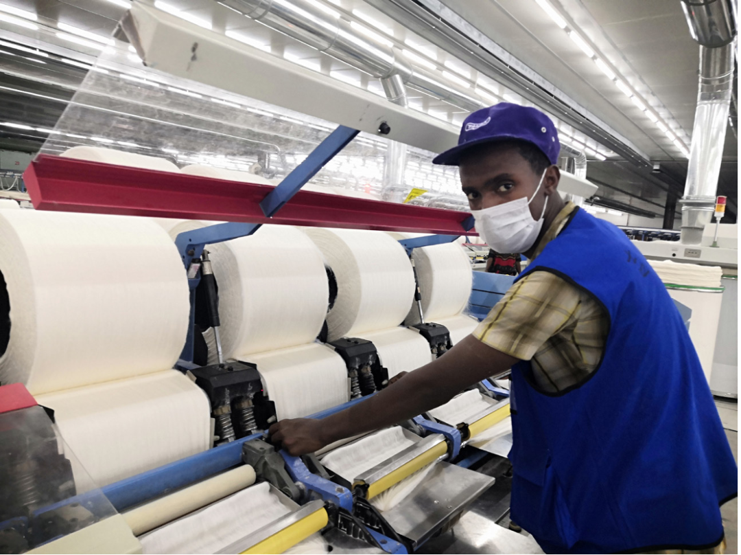 “我們工廠去年10月16日才正式投產(chǎn),很多員工都還在努力適應(yīng)新的工作環(huán)境和工藝技術(shù)。雖然忙碌,但是有中國(guó)師傅耐心的教導(dǎo),我們都收獲很多,相處得也非常愉快。沒(méi)想到會(huì)遇上新冠肺炎疫情,而且發(fā)展得這么快。”無(wú)錫一棉埃塞俄比亞工廠(簡(jiǎn)稱“一棉”)紡紗車間助理姬發(fā)回想起年初剛遭遇疫情時(shí)的狀況,就打開(kāi)了話匣子。