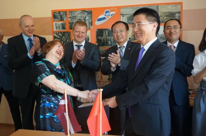 2018年8月,里加油漆涂料工廠與北京瑞拉克礦物涂料有限公司簽署總代理協(xié)議(前排左一為拉瑞薩)