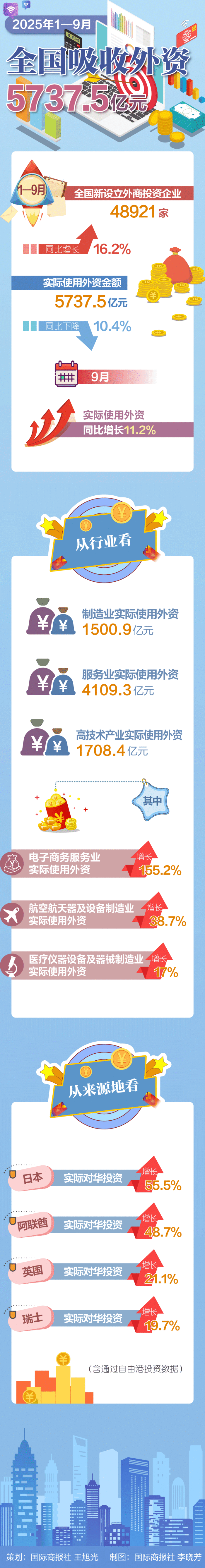 2025年1—9月 全國(guó)吸收外資5737.5億元