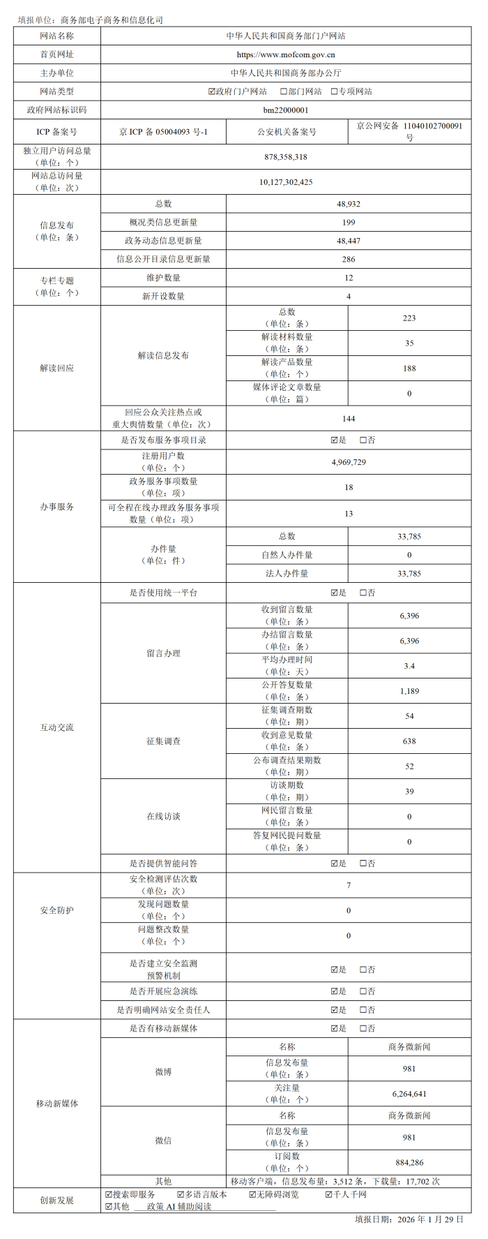 中華人民共和國商務部門戶網站工作年度報表(2025年度)